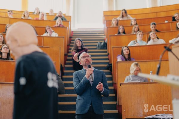 Primár gynekologicko – pôrodníckeho oddelenia Nemocnice AGEL Zvolen, MUDr. Andrej Jenčo a mladá lekárka, MUDr. Vanesa Mikulášová z oddelenia Gynekológie a pôrodníctva Nemocnice AGEL Komárno priblížili študentom zo svojej praxe súhrn klinických pozorovaní a akútnych stavov, ako napr. tubárna gravidita (mimomaternicové tehotenstvo) a mnoho ďalších. O jednotlivých prípadoch z praxe tak mohli študenti bezprostredne diskutovať s prednášajúcimi lekármi, či vypočuť si informácie o postupoch liečby.