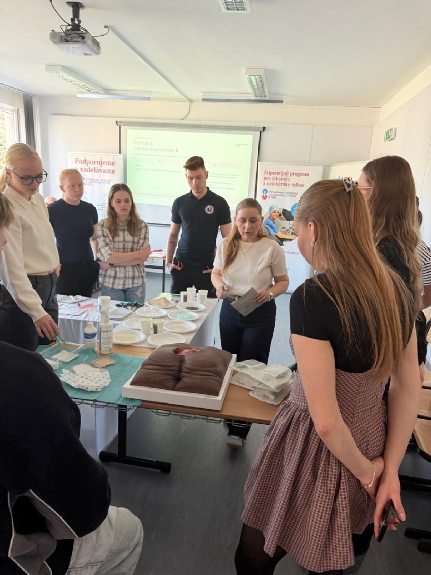 Sériu workshopov odštartoval jeden z prvých na Slovenskej zdravotníckej univerzite v Banskej Bystrici, kde si študenti vyskúšali jednotlivé postupy ošetrovania rán na realistických modeloch a v modelových situáciách vychádzajúcich z klinickej praxe.